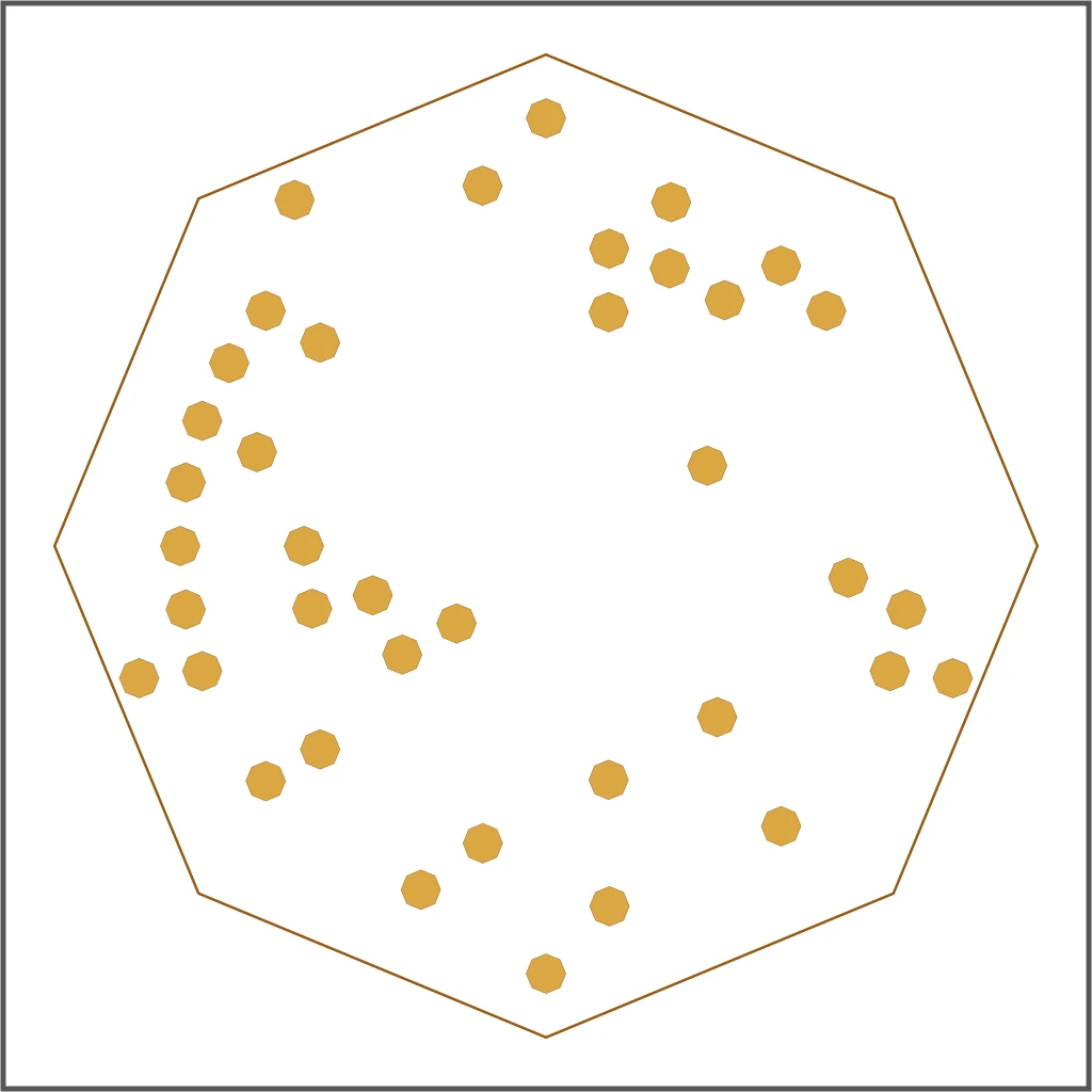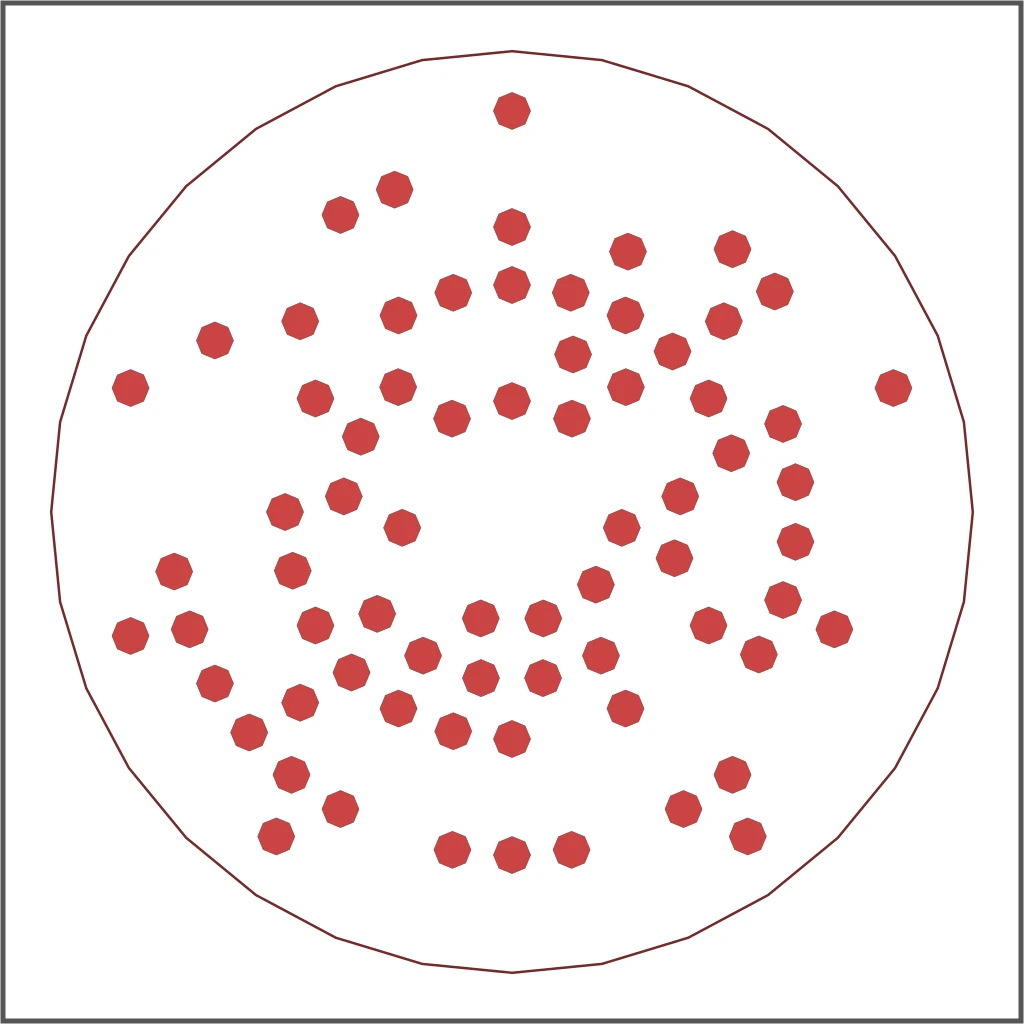 The architecture is called radial-ring encoding. Instead of nesting polygons inside polygons (the original approach), we arrange data cells in concentric rings around a center point. Every cell position is deterministic, it depends only on how many bits you're encoding, not on what those bits contain.